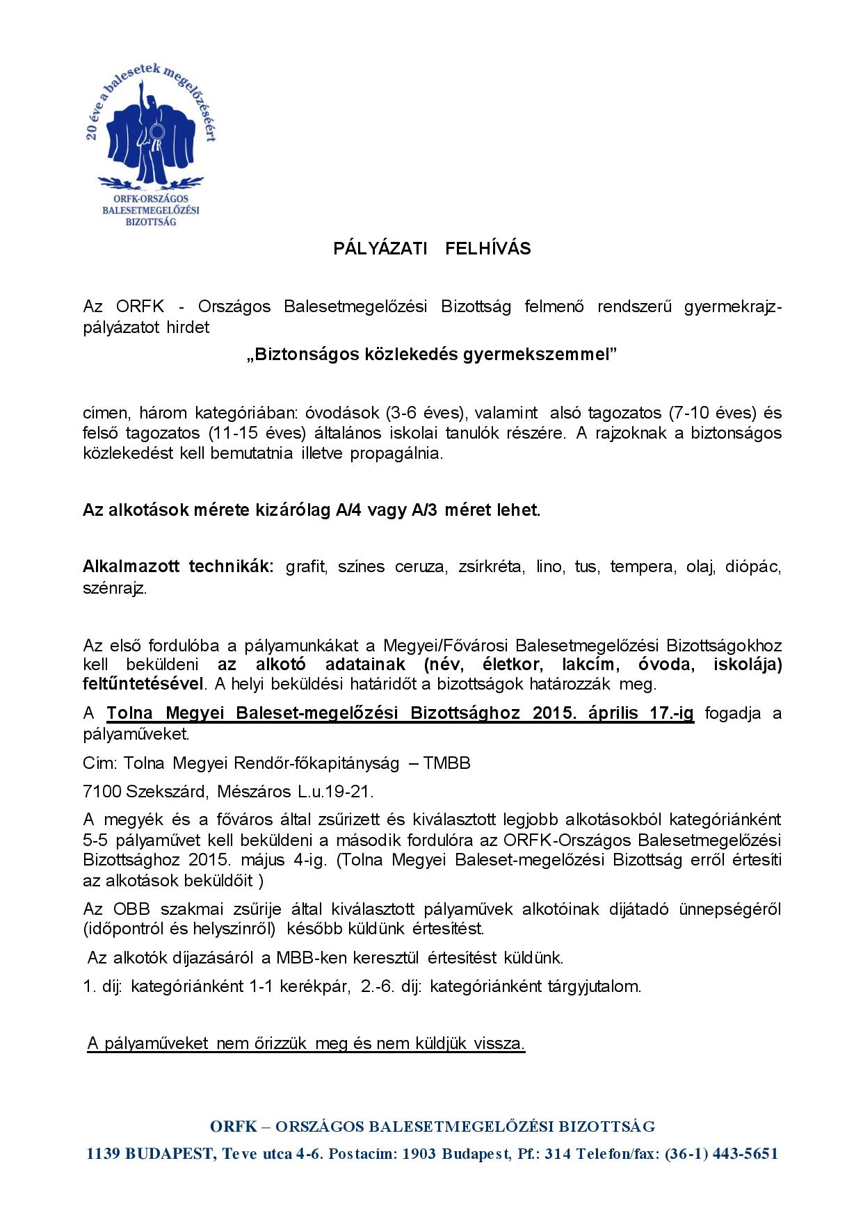 Az Országos Balesetmegelőzési Bizottság felmenő rendszerű gyermekrajz-pályázatot hirdet, a rajzoknak a biztonságos közlekedést kell bemutatniuk illetve propagálniuk