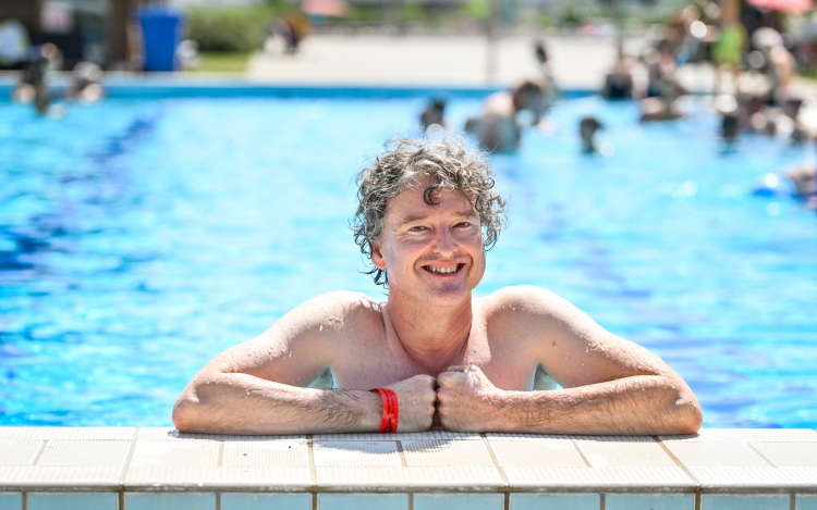 Beleznay Endre csobbanása a Szigetvári Gyógyfürdőben