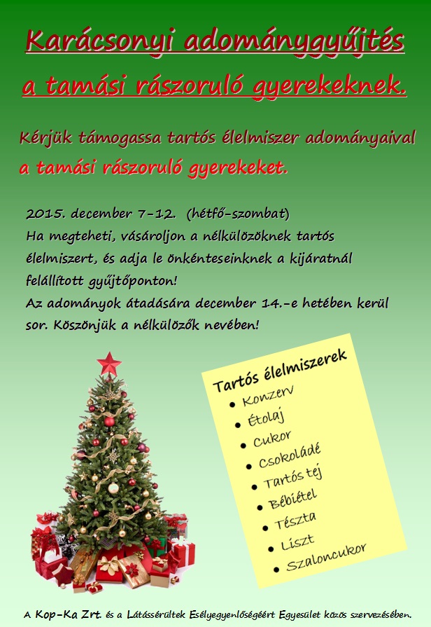 Ezen a héten Ön is támogathatja tartós élelmiszer adományaival a tamási rászoruló gyerekeket