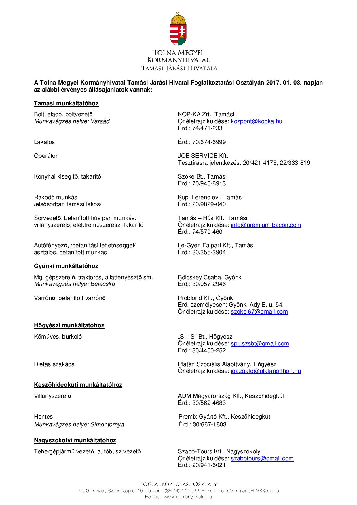 Tekintse meg Tamási és környéke legfrissebb állásajánlatait!
