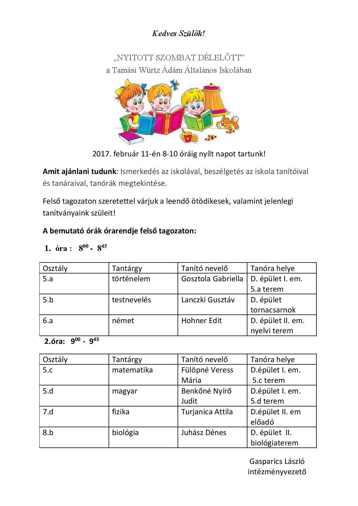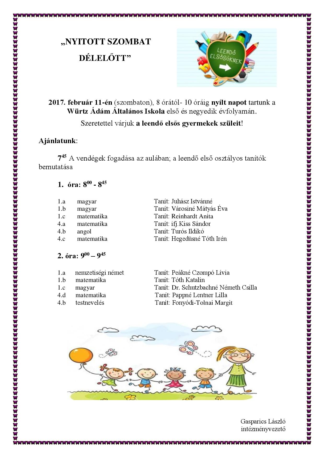 Nyílt nap a Würtz Ádám Általános Iskolában