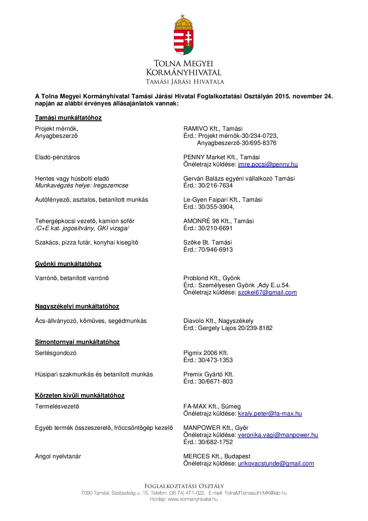 Tamási és környéke legfrissebb állásajánlatai