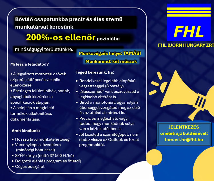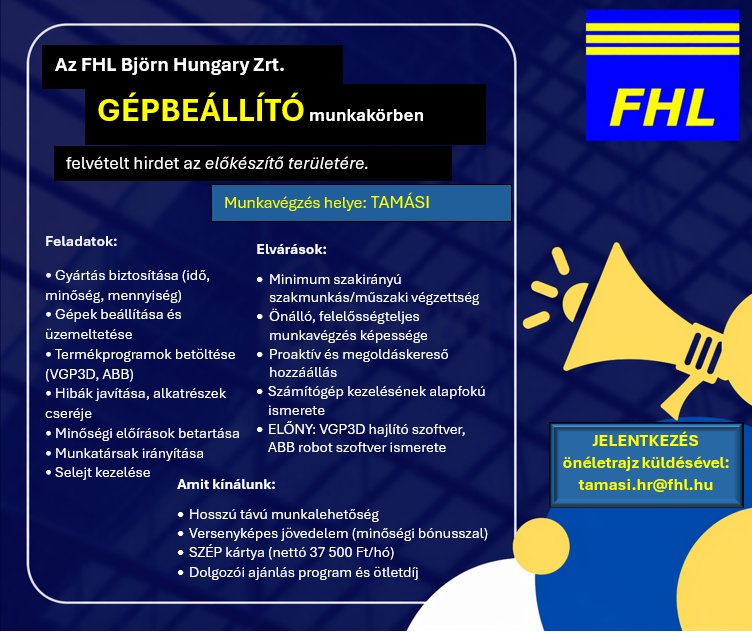 Új állásajánlatok Tamásiban az FHL Björn Hungary Zrt-nél