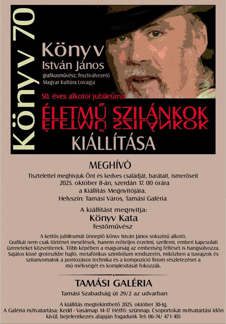 A Tamási Galériában Könyv István János grafikus, fesztivál vezető kiállítását tekinthetjük meg.