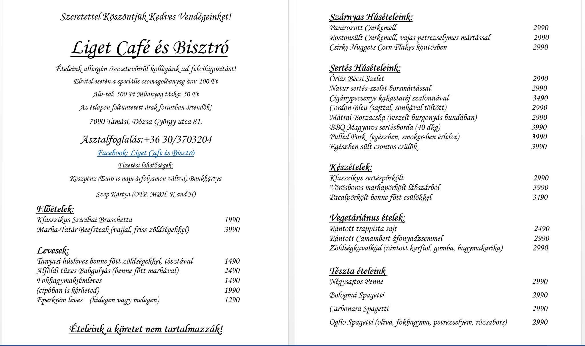 - A napi menüt és az a La carte ételeket is Tamási belterületén ingyen kiszállítjuk, kérjük a rendelést aznap 10 óráig leadni!