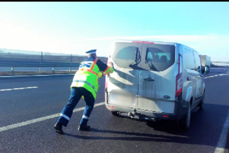 Egy műszaki hibás kisbusz vesztegelt a leállósávban. A hajdú-bihari rendőrök segítettek a sofőrnek egy közeli pihenőbe tolni a járművet.