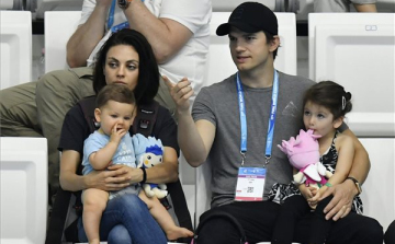 Mila Kunis és Ashton Kutcher két gyerekükkel szurkoltak hétfőn.