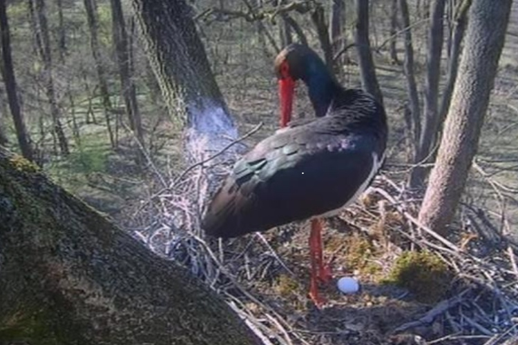 Megjelent az első tojás csütörtökön a gemenci feketególya-pár bekamerázott fészkében.