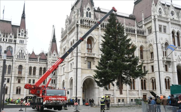 Az ünnepi gyertyagyújtás szimbólumaként felkapcsolták az Ország Karácsonyfáját díszítő fényfüzért a Kossuth téren vasárnap.
