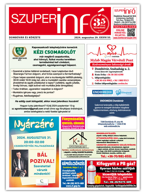 A Dombóvári Szuperinfó legújabb száma oldalunkon már olvasható!