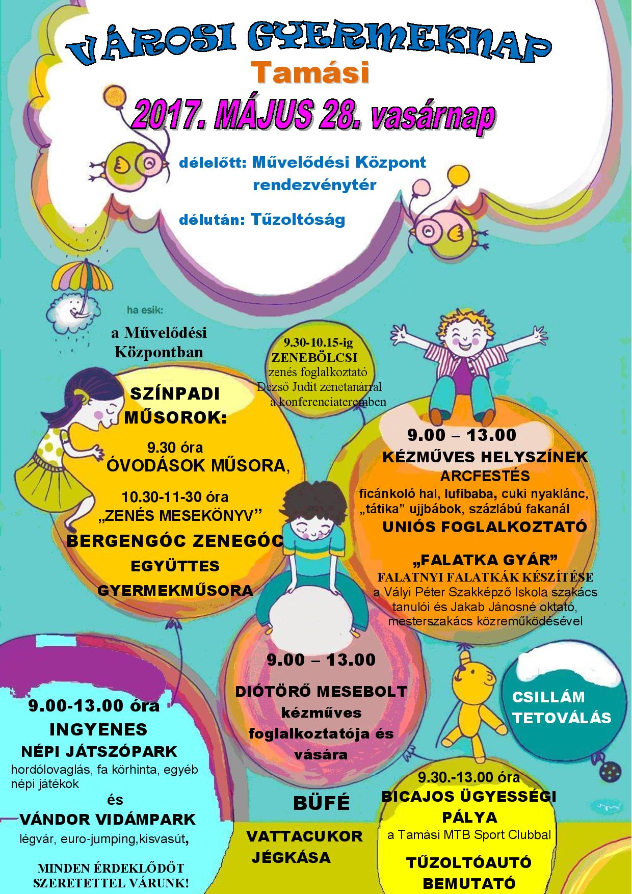 A Túrmezei Erzsébet téren délelőtt, a Tűzoltóságon pedig délután zajlanak a gyermeknapi programok