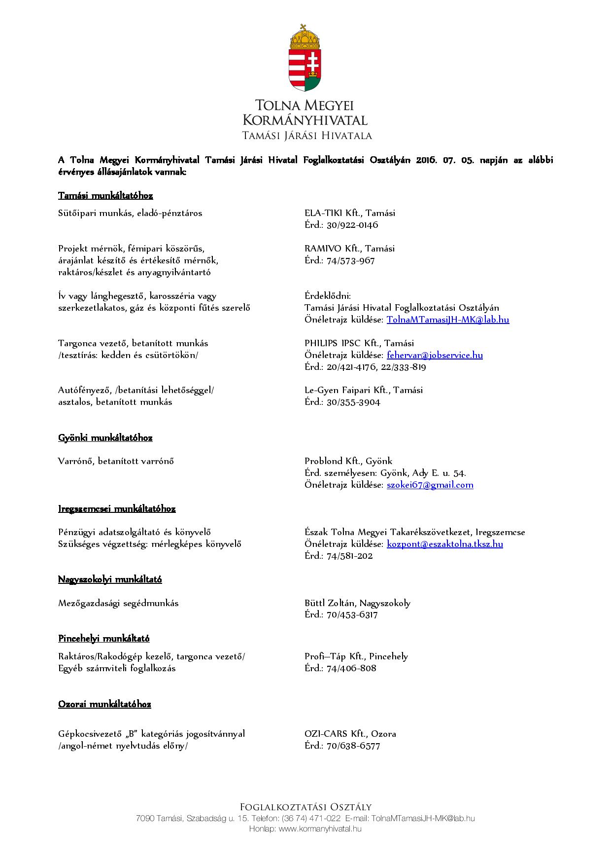 Tekintse meg Tamási és környéke legfrissebb állásajánlatait!