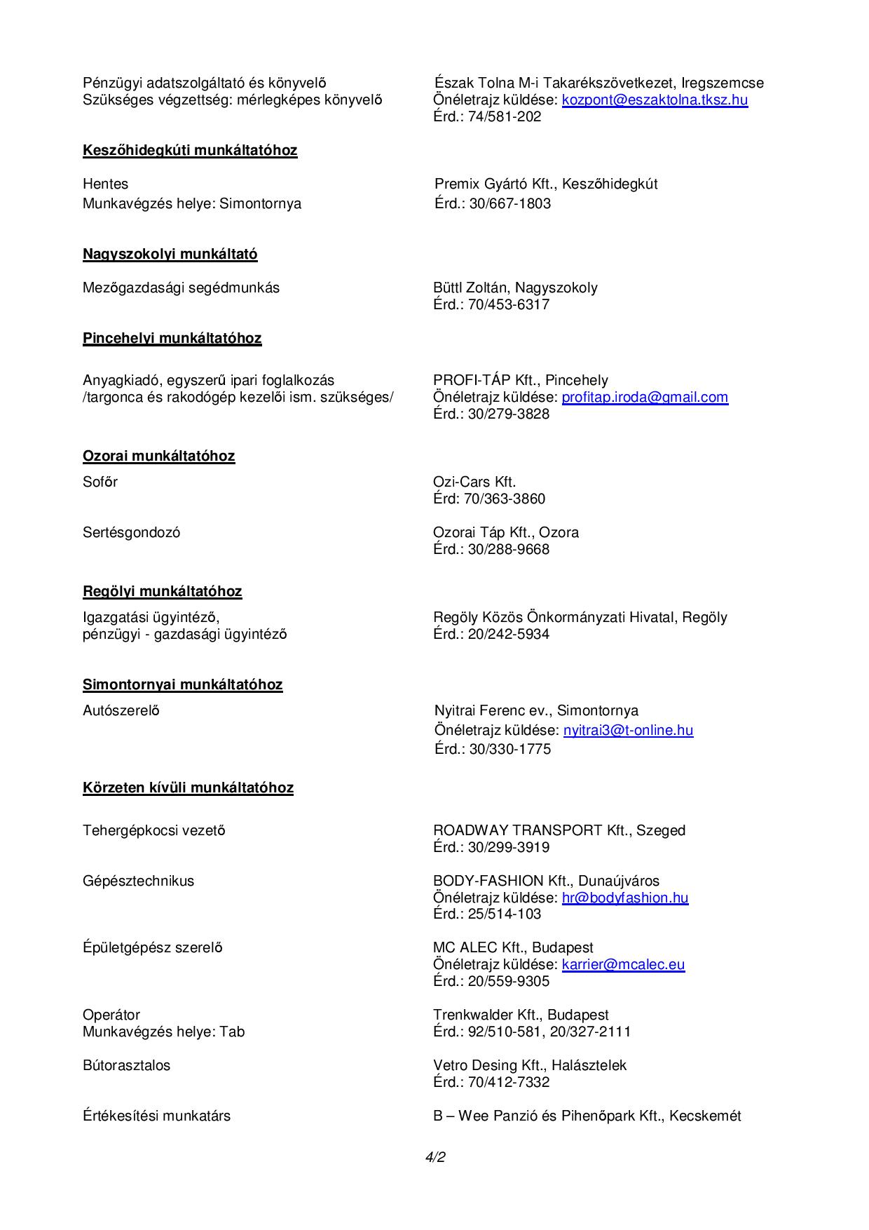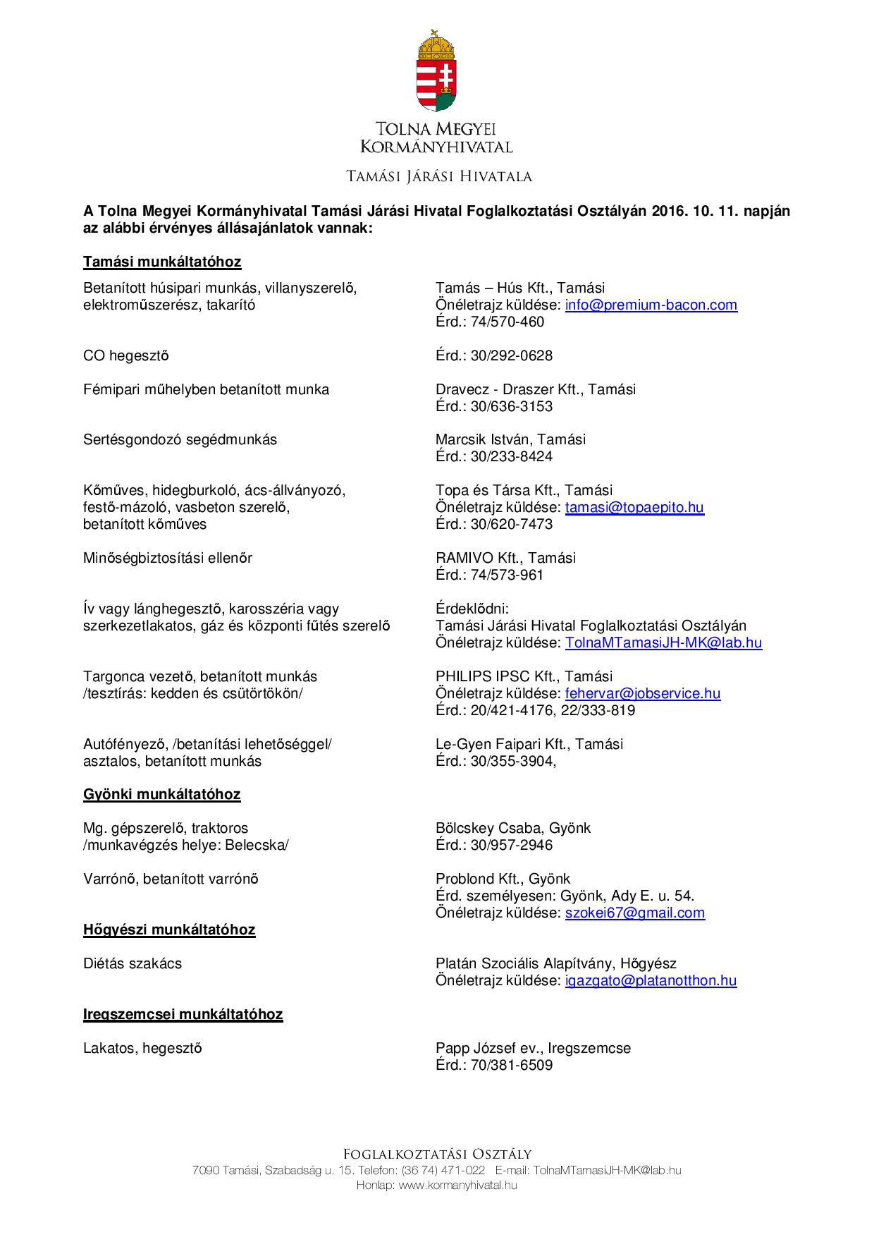Tekintse meg Tamási és környéke legfrissebb állásajánlatait!