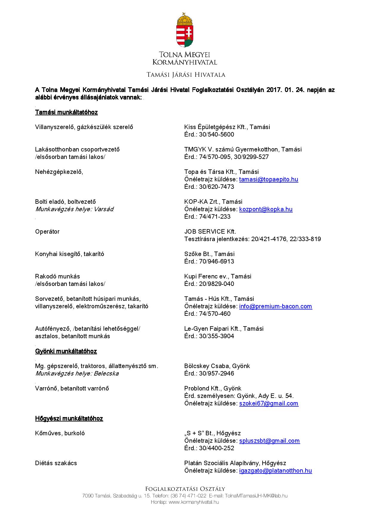 Villanyszerelőt, nehézgépkezelőt, bolti eladót, konyhai kisegítőt is keresnek Tamásiban