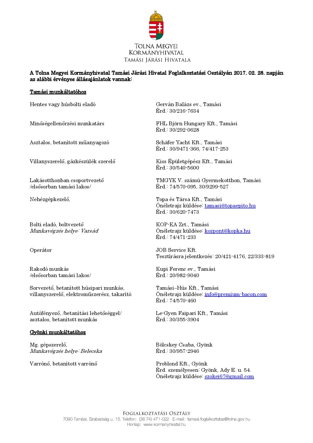 Tekintse meg Tamási és környéke legfrissebb állásajánlatait!