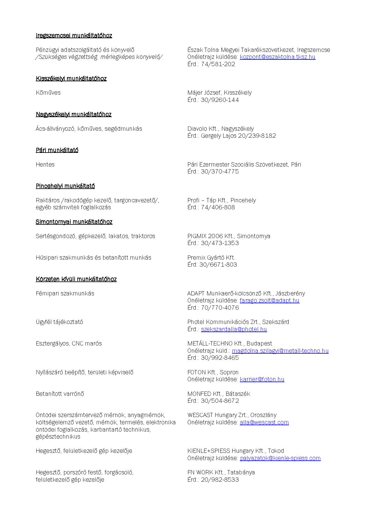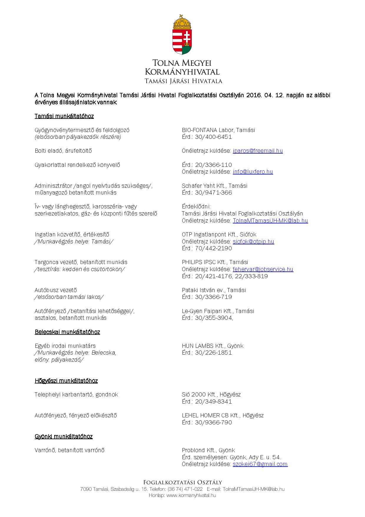 Állásajánlatok Tamásiban és környékén