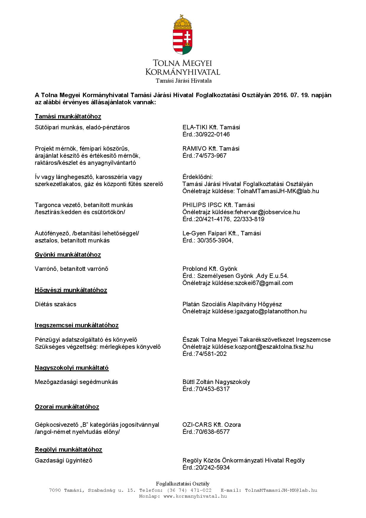 Tekintse meg Tamási és környéke legfrissebb, aktuális állásajánlatait!