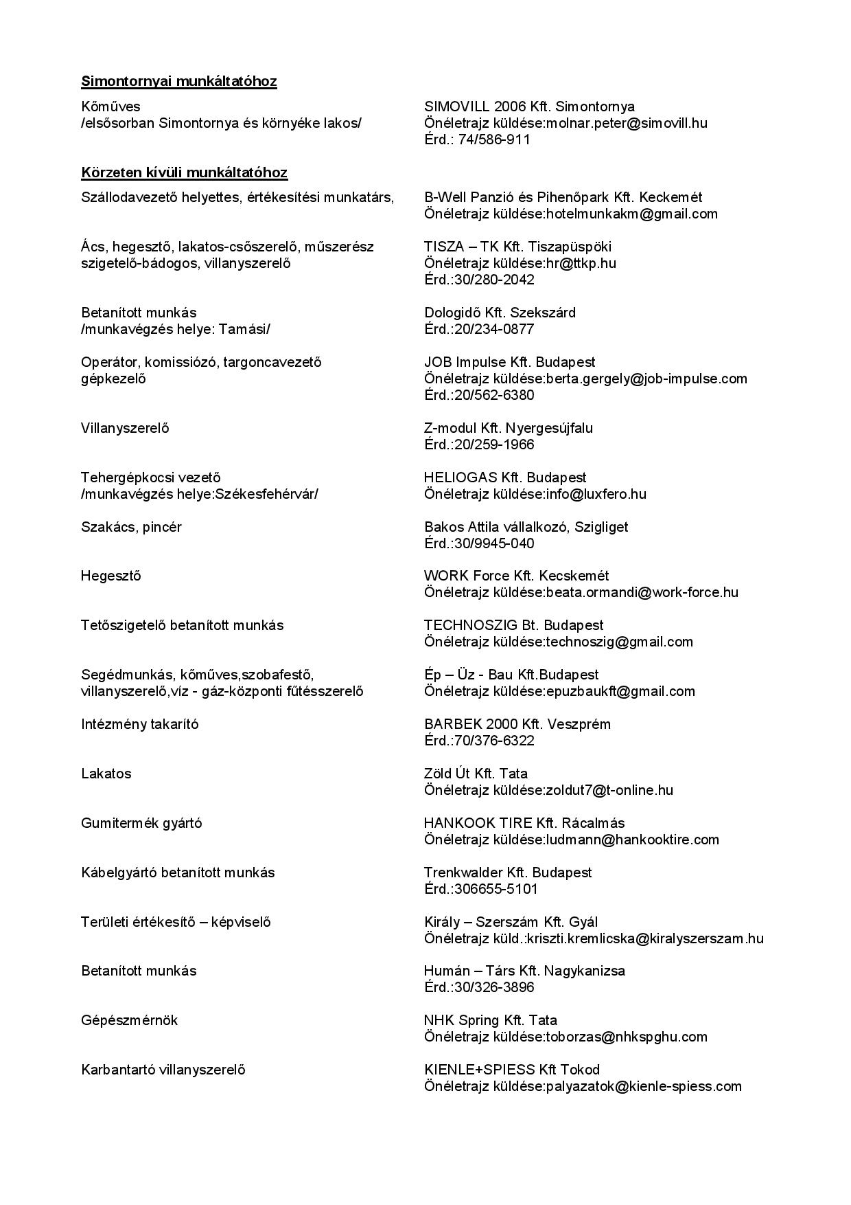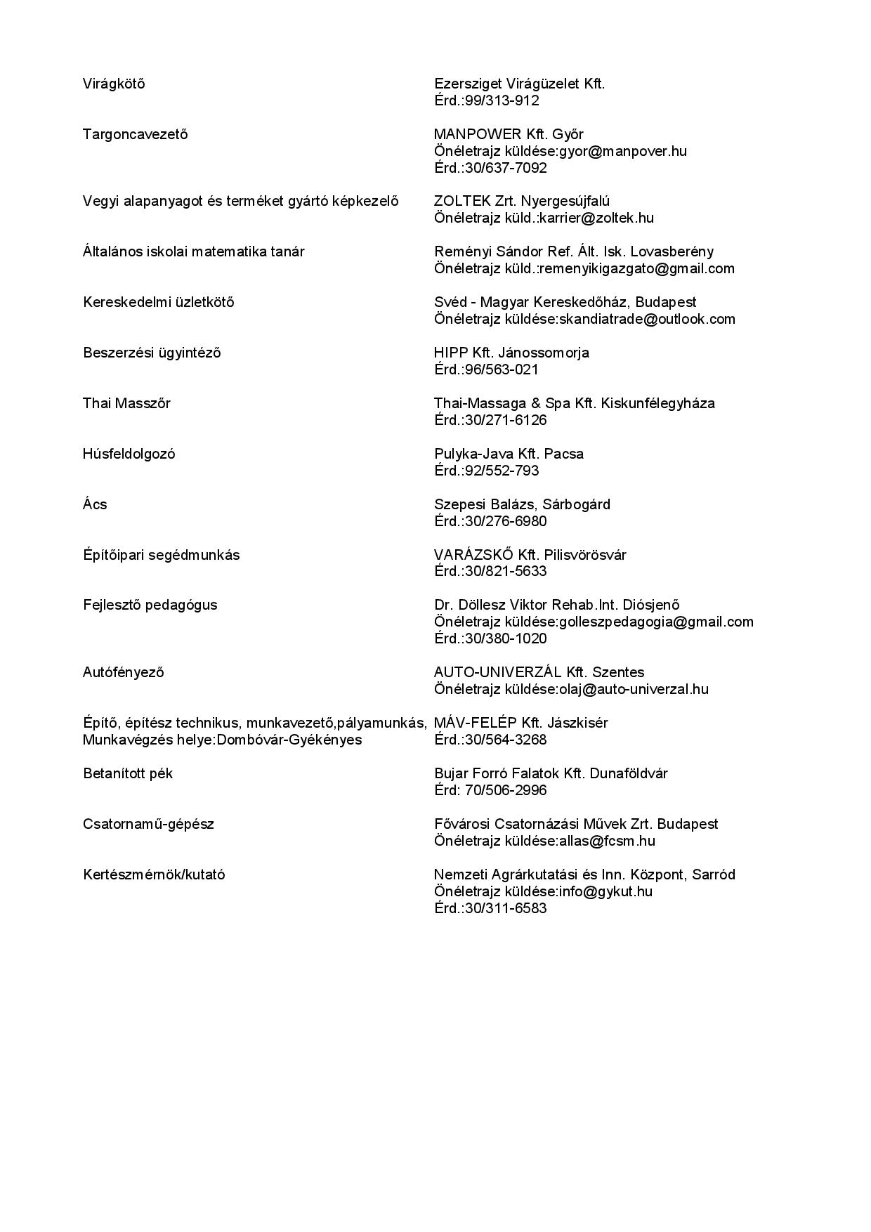 Állásajánlatok Tamásiban és környékén
