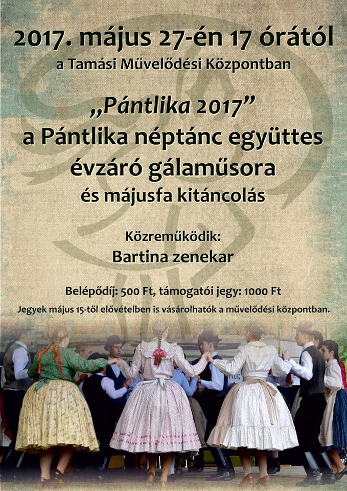 Az idei évben az évzáró gálaműsorra és májusfa kitáncolásra május 27-én 17 órakor kerül sor, melyre szeretettel vár az együttes minden érdeklődőt