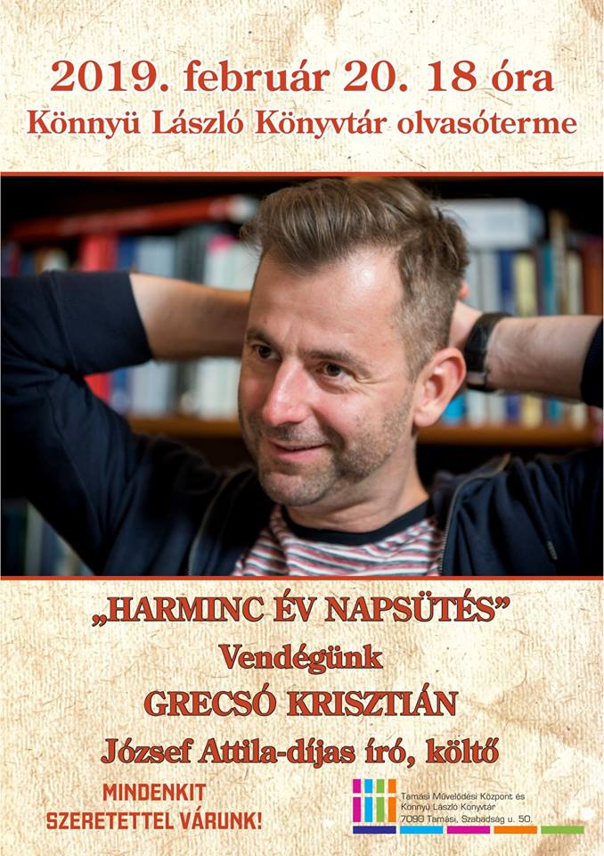A József Attila-díjas író, költő, az Élet és Irodalom c. folyóirat szerkesztőjének estje ma 18 órakor kezdődök a Könnyü László Könyvtárban.
