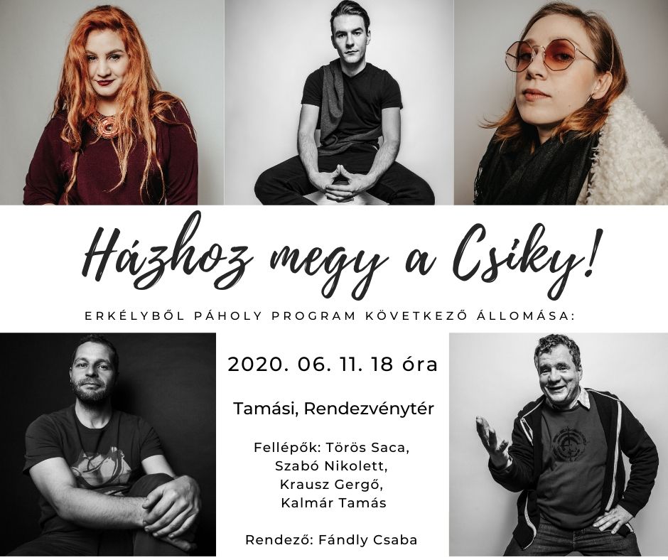 Mivel a Tamási Művelődési Központ még nem nyithatja meg kapuit a színházlátogatók előtt, így a két intézmény összefogásának eredményeként, 2020. június 11-én, 18 órakor a rendezvénytér szabadtéri színpadán élvezhetik a kilátogatók a Csiky Gergely Színház művészeinek rövid, élő, fél óra időtartamú, ingyenes előadását, szórakoztató műsorát. A szervezők kérik, hogy a résztvevők tartsák be az érvényben lévő egészségügyi ajánlásokat.