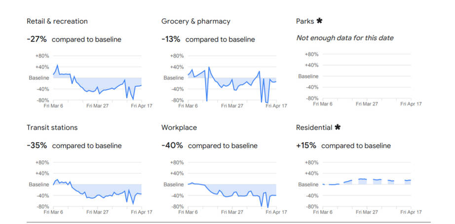 A fenti statisztikák megmutatják, hogy a különböző helyszínek látogatottsága és az ott eltöltött idő hossza milyen arányban változott a bázisvonalhoz képest – írja a cég a riportban. A cél az, hogy bemutassák a megelőző intézkedések (például: home office, kijárási tilalmak és korlátozások) hatékonyságát. Az adatokat a Google Térkép-alkalmazásból nyerték ki azoktól a felhasználóktól, akik a fiókjukban engedélyezték a helyelőzmények megadását.