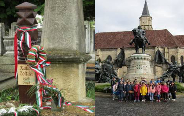 A Dombóvári Belvárosi Általános és Alapfokú Művészeti Iskola 7. a osztályos tanulói 24 –en három pedagógus kíséretében kirándultak az Erdélybe szervezett kiránduláson 2018. május 13-ától 16-áig. Az első két állomás Nagyvárad és Nagyszalonta volt, a Szent Antal Gyermekotthonban volt a szállás, ahol vacsorával várták a csoportot, köszönetül előadták a műsorukat (Énekek, az Összetartozás dala is…), majd átadták a 60 személyes ajándékot. A második napon először Aradra látogattak, ahol megkoszorúzták a Szabadságszobrot, az aradi vértanúk emlékoszlopánál a koszorúzás közben Vörösmarty Mihály Szózatát szavalták végig. A nap további részében jártak a máriaradnai kegytemplomban, Déván a várban, a Dévai Gyermekotthonban, ahol átadták az ajándékaikat és az adományaikat. Ezután a Vajdahunyad várának megismerése következett. Nagyon tetszett a gyerekeknek, hogy egy kis történelmi felelevenítés után saját maguk fedezhették fel a várat a munkafüzet feladataira keresve a válaszokat. A harmadik napon Gyulafehérvárott az érseki székesegyházban a Himnusz éneklése közben megkoszorúzták Hunyadi János síremlékét. Jártak Nagyenyeden (a híres kollégiumban). Esős lett az idő, s a Tordai-hasadék helyett a Világörökség részét képező Torockót látogatták meg. A szállás Kolozsváron volt. A negyedik napot a kolozsvári Házsongárdi temetőben kezdték, zeneisek lévén először Kallós Zoltán kopjafáját keresték meg, ahol elénekelték egyik kedvenc általa gyűjtött katonadalát, a Vágják az erdei utat (4. kép). A városbeli séta során megcsodálták Fadrusz János Mátyás szobrát (5. kép), végül a városnézés Mátyás király és Bocskai István szülőházánál fejeződött be.