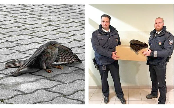 Feltehetően ablaknak repülhetett a karvaly, majd az udvar betonjára esett. A sérült madarat Szabó Bence r. őrmester és Gombkötő Roland r. őrmester egy dobozba helyezték, majd értesítették a székesfehérvári vadmadár kórházat, akik gondoskodtak a védett madár elszállításáról.