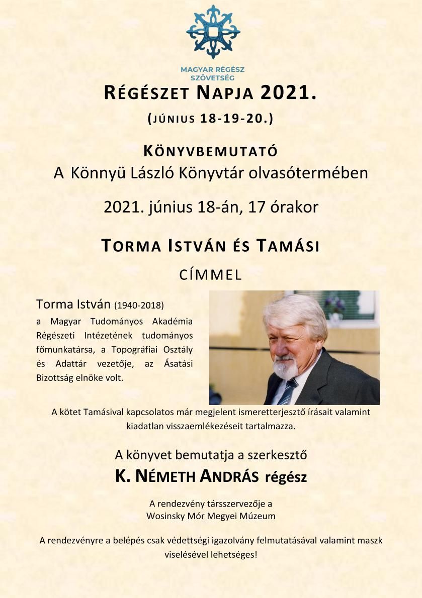A Régészet Napja a tavalyi évhez hasonlóan idén is az Európai Régészeti Napok / European Archaeology Days európai rendezvénysorozathoz kapcsolódik majd. A Régészet Napja 2021 központi témájának az MRSZ elnöksége a „Különleges helyek” címet javasolja. A sokféleképpen értelmezhető tematika nagy szabadságot biztosít a csatlakozó intézményeknek és közösségeknek: magába foglalhatja akár egy, a régészeti kutatás által feltárt, illetve felfedezett szakrális hely bemutatását, szólhat egy-egy a mai és egykori közösség számára kiemelten fontos régészeti helyszínről, de foglalkozhat egy különleges helyiséggel, épülettel vagy akár egy teljes lelőhellyel vagy településsel is. Külön hangsúlyt kaphatnak azok a helyek, amelyek köré egykor és most is közösségek szerveződtek és amelyek különlegességükkel, „kisugárzásukkal” segíthették és segíthetik létrehozóik és fenntartóik kohézióját és akár megújulását is. Gondolhatunk olyan, a régészeti örökségünk ápolása szempontjából értékes helyszínekre is, mint pl. a múzeumok, vagy éppen a közösségi régészet színterei. A tamási Könnyü László Könyvtár is csatlakozott a régészet napjához, június 18-án 17 órai kezdettel a könyvtár olvasótermében Torma István és Tamási címmel könyvbemutatóra kerül sor.