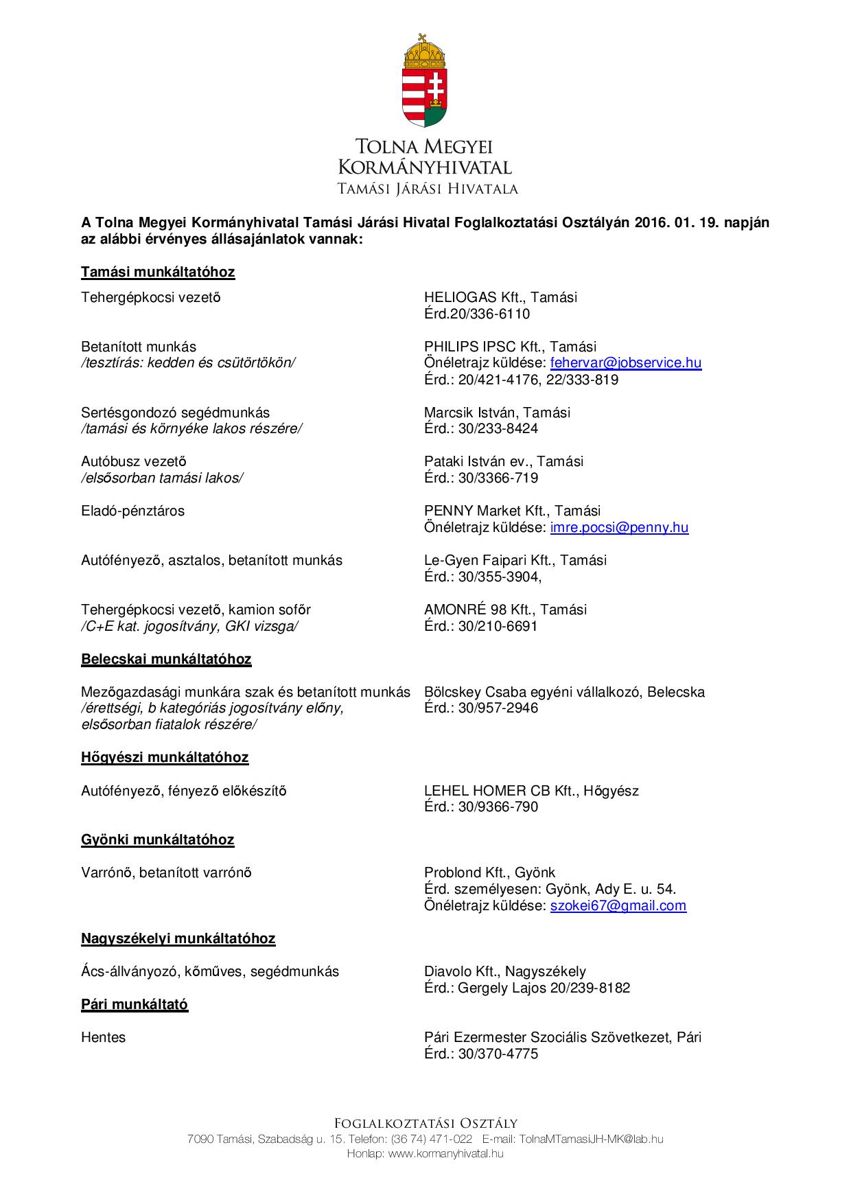 Tehergépkocsi vezetőt, eladót és autóbusz vezetőt is keresnek Tamásiban