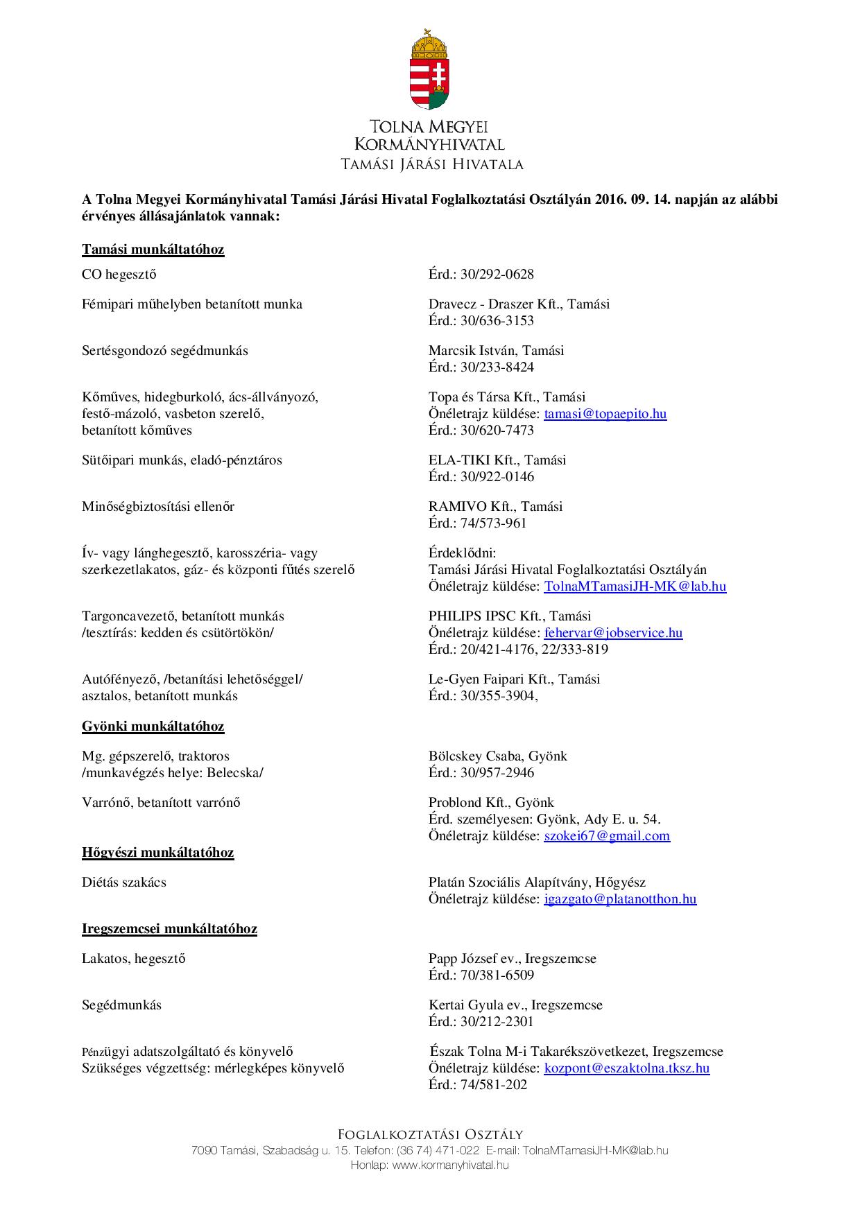 CO hegesztőt, kőművest, eladó-pénztárost és minőségbiztosítási ellenőrt is keresnek Tamásiban