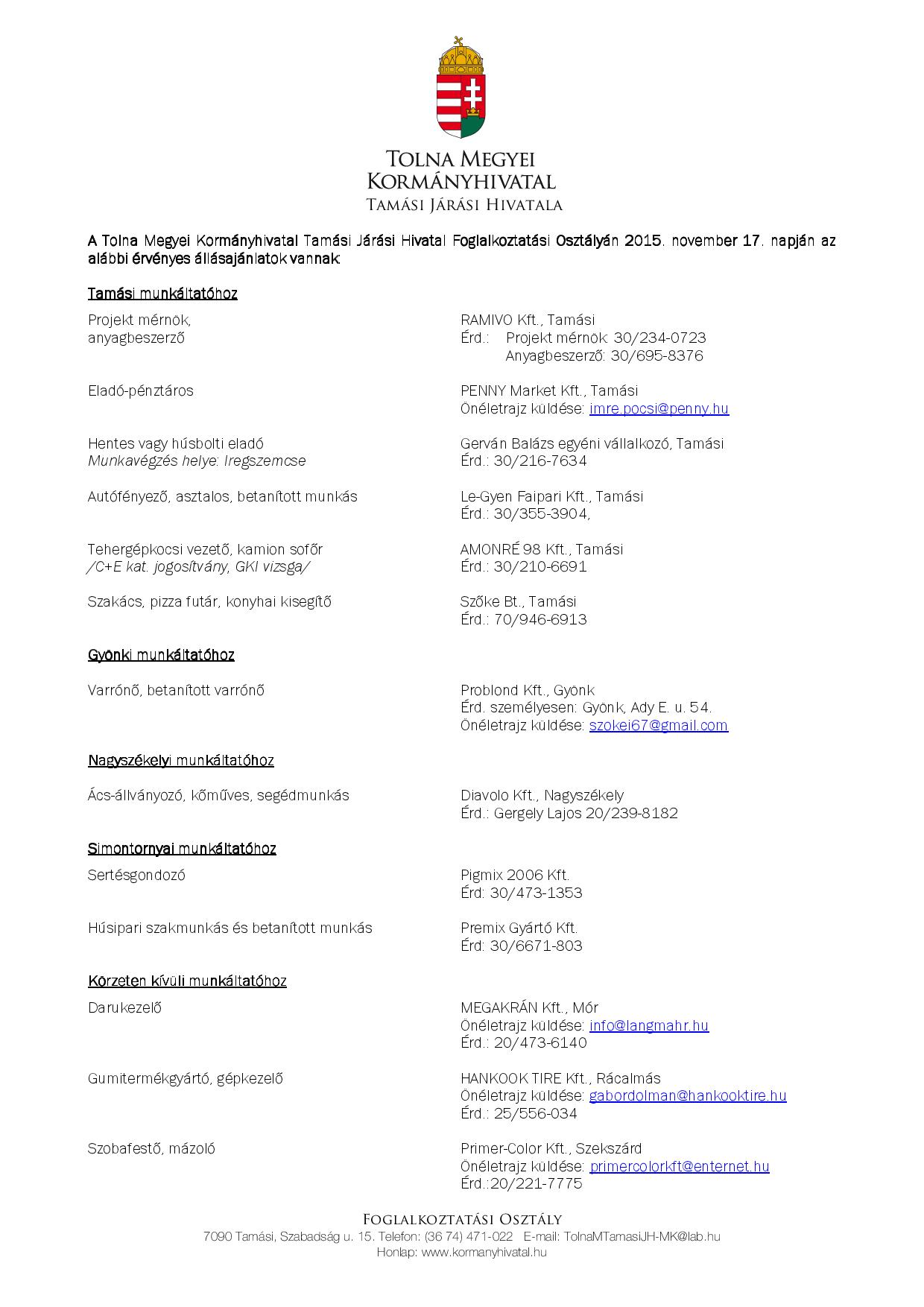 Tekintse meg Tamási és környéke aktuális állásajánlatait