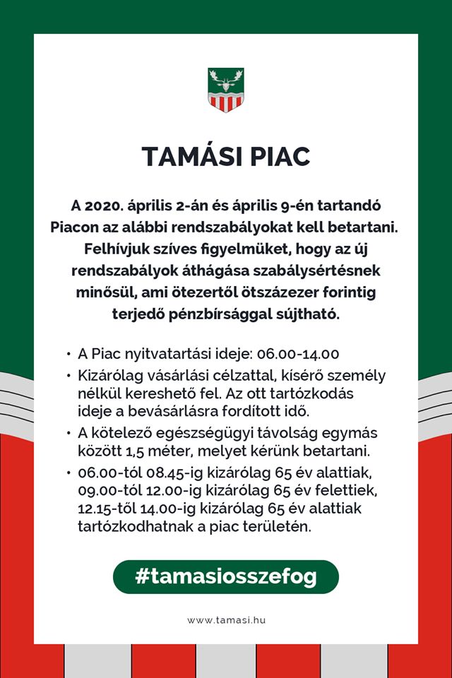 Vegyes a kép, ami a helyi piacok nyitvatartását illeti Tolna megyében. Tamásiban április 2-án és április 9-én kizárólag a helyi termékeket forgalmazók részére biztosítanak árusítási lehetőséget.