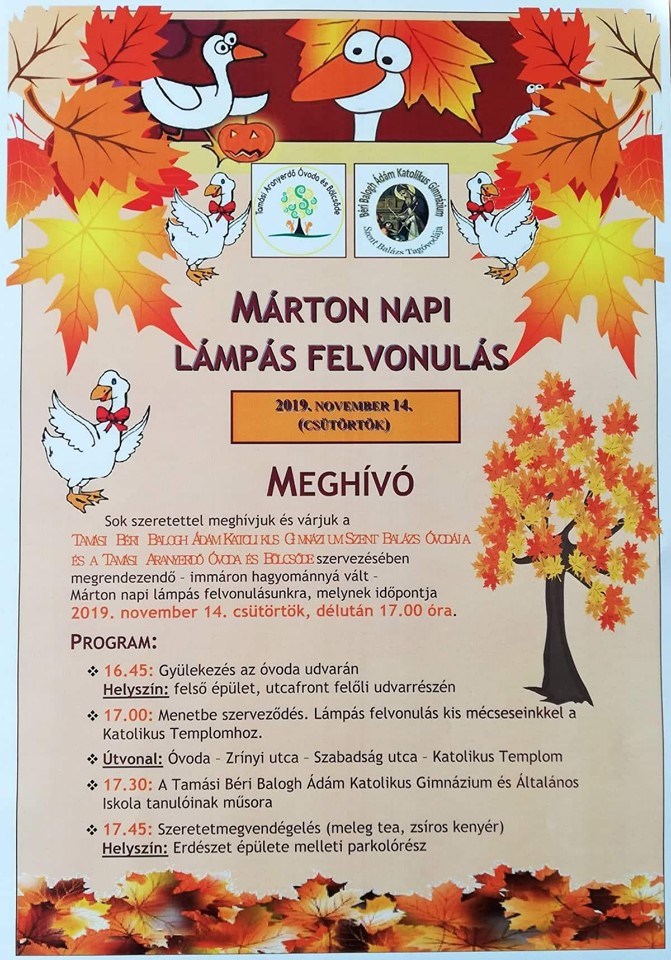 Hagyományos rendezvény már Tamásiban a Márton napi lámpás felvonulás. A szervezők idén is szeretettel várnak mindenkit, gyermekeket és szüleiket egyaránt.
