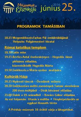 A templomban latin misével kezdődik az este 18:30-kor, ezt követően Hegedüs János plébános előadása következik, majd megemlékeznek a Mária-szobor avatására is. A Kultúrák Házánál az óvodások műsorával, Deák Istvánné és Kovács Gábor előadásával várják az érdeklődőket, de a Pincemúzeum is tárt kapukkal vár mindenkit már délután 4 órától.