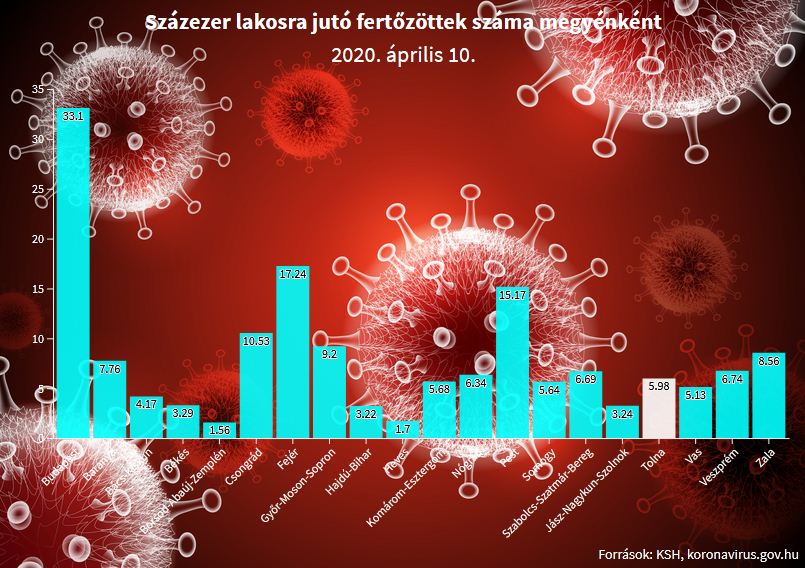 A Központi Statisztikai Hivatal (KSH) népességi adatai alapján kiszámolták a százezer lakosra jutó vírushordozók számát megyénként, Tolnában ez 5,98. Megyénk a tizedik helyen áll a listán, és ezzel jóval az összesített országos adat (12,18) alatt helyezkedik el.