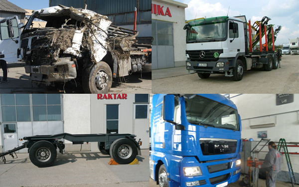 Egyik szakterületük a balesetet szenvedett kamionok, teherautók fülkéinek helyreállítása Caroliner huzatópadon, a fülkék komplett cseréje, sérült, karambolos elemek cseréje, üvegszálas elemek javítása, valamint a spoilerek újragyártása.