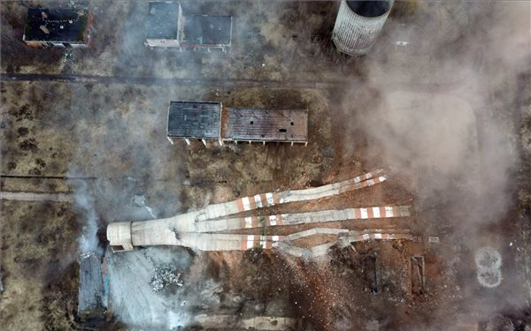Robbantással döntötté le az egykori Borsodi Ércelőkészítő Mű kéményét Szirmabesenyőben pénteken.