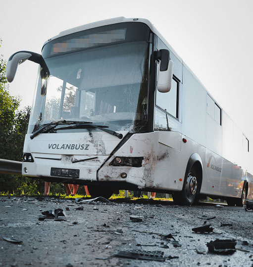 Frontálisan ütközött egy menetrend szerint közlekedő autóbusz és egy személygépkocsi kedd reggel Szakályban, a 65-ös számú főút harminckettedik kilométerénél.