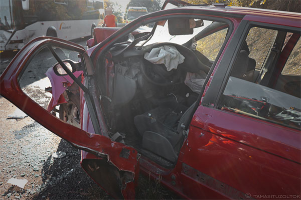 A 33-as kilométernél történt balesethez a tamási önkormányzati tűzoltók vonultak. A raj a személykocsi beszorult utasát feszítővágóval szabadították ki az összetört autóból. A buszon harmincöt-negyven ember ült. A két jármű utasaihoz mentők, illetve mentőhelikopter érkezett. A főút érintett szakaszát egy időre teljes szélességében lezárták.