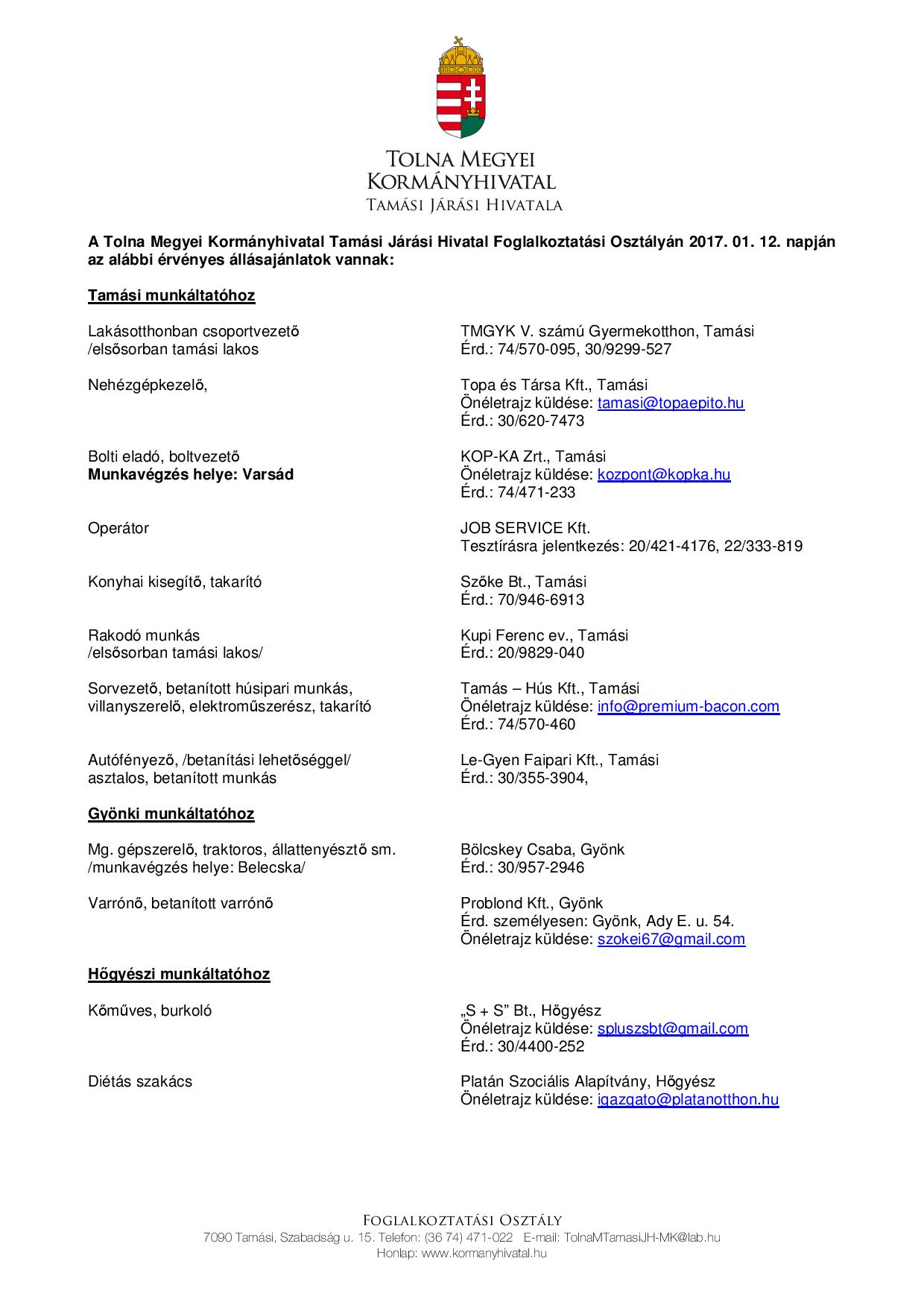 Tekintse meg Tamási és környéke legfrissebb állásajánlatait!