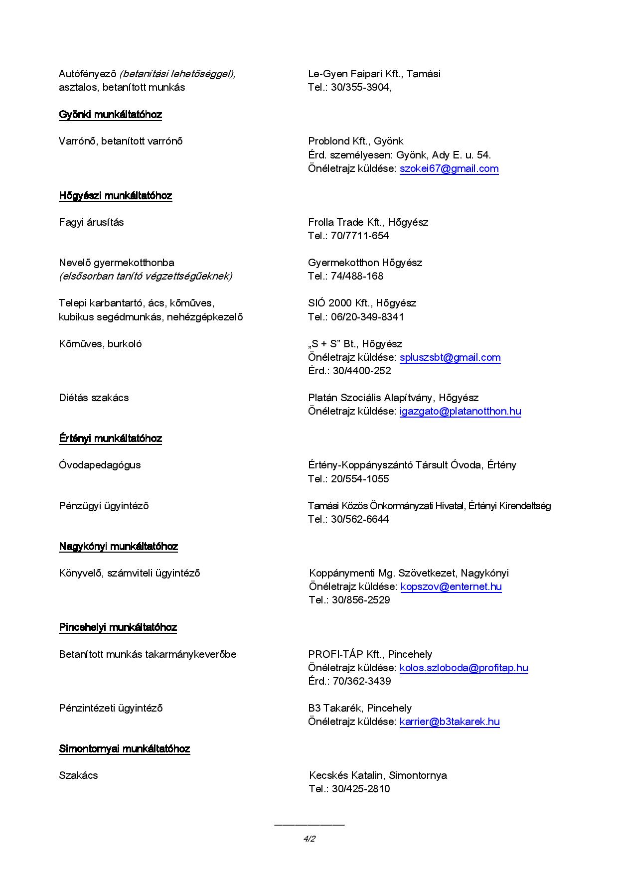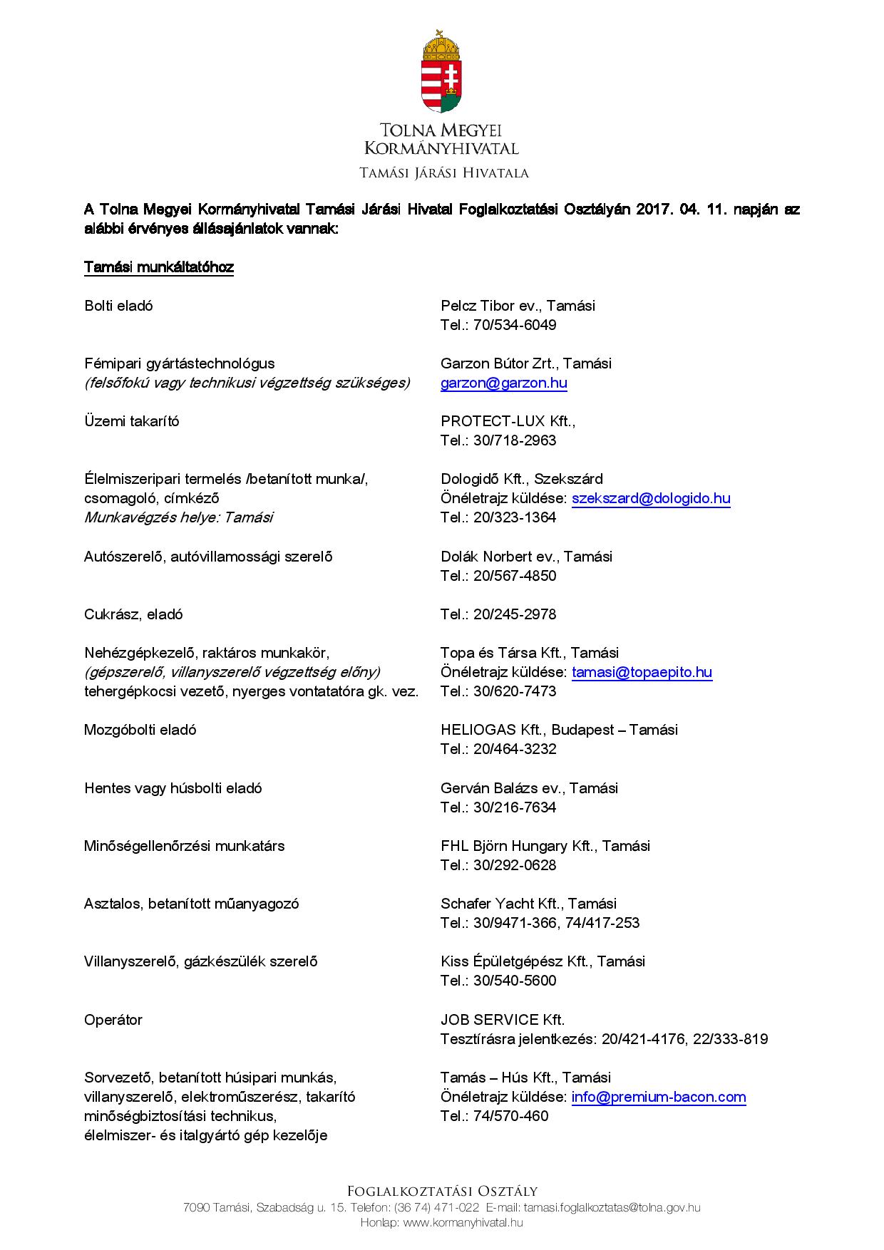 Bolti eladót, cukrászt, asztalost, minőségellenőrzési munkatársat is keresnek Tamásiba