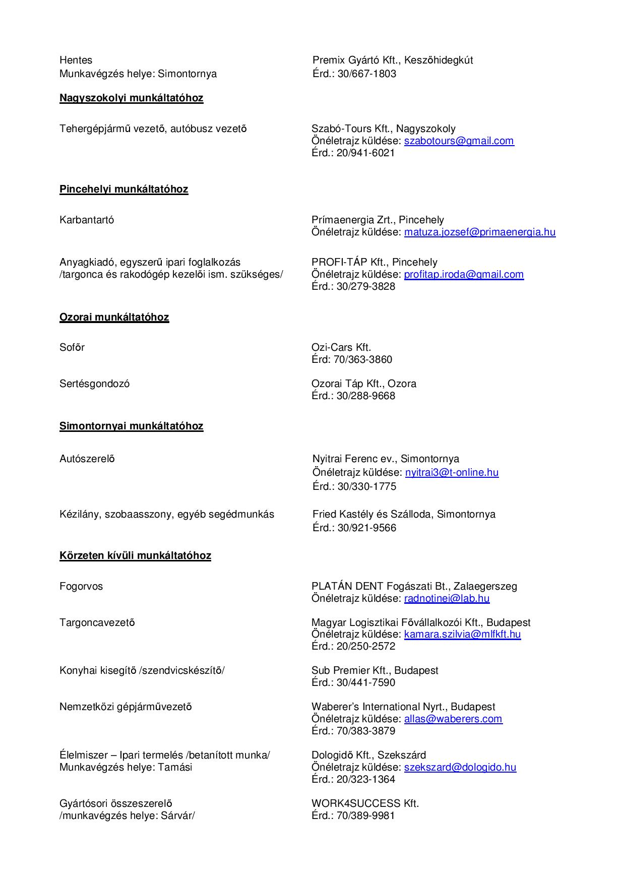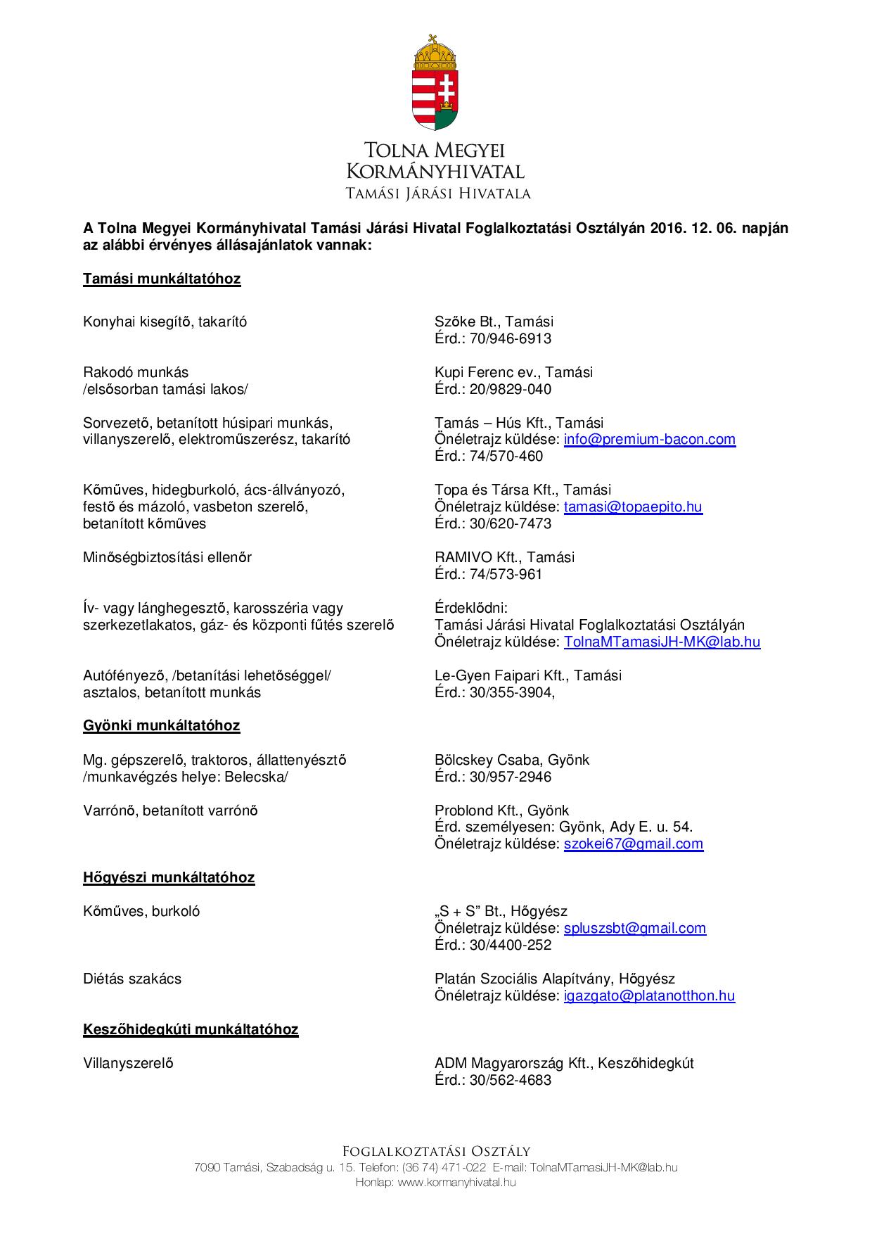 Tekintse meg a tamási, gyönki, hőgyészi, keszőhidegkúti, nagyszokolyi, pincehelyi vagy ozorai állásajánlatainkat