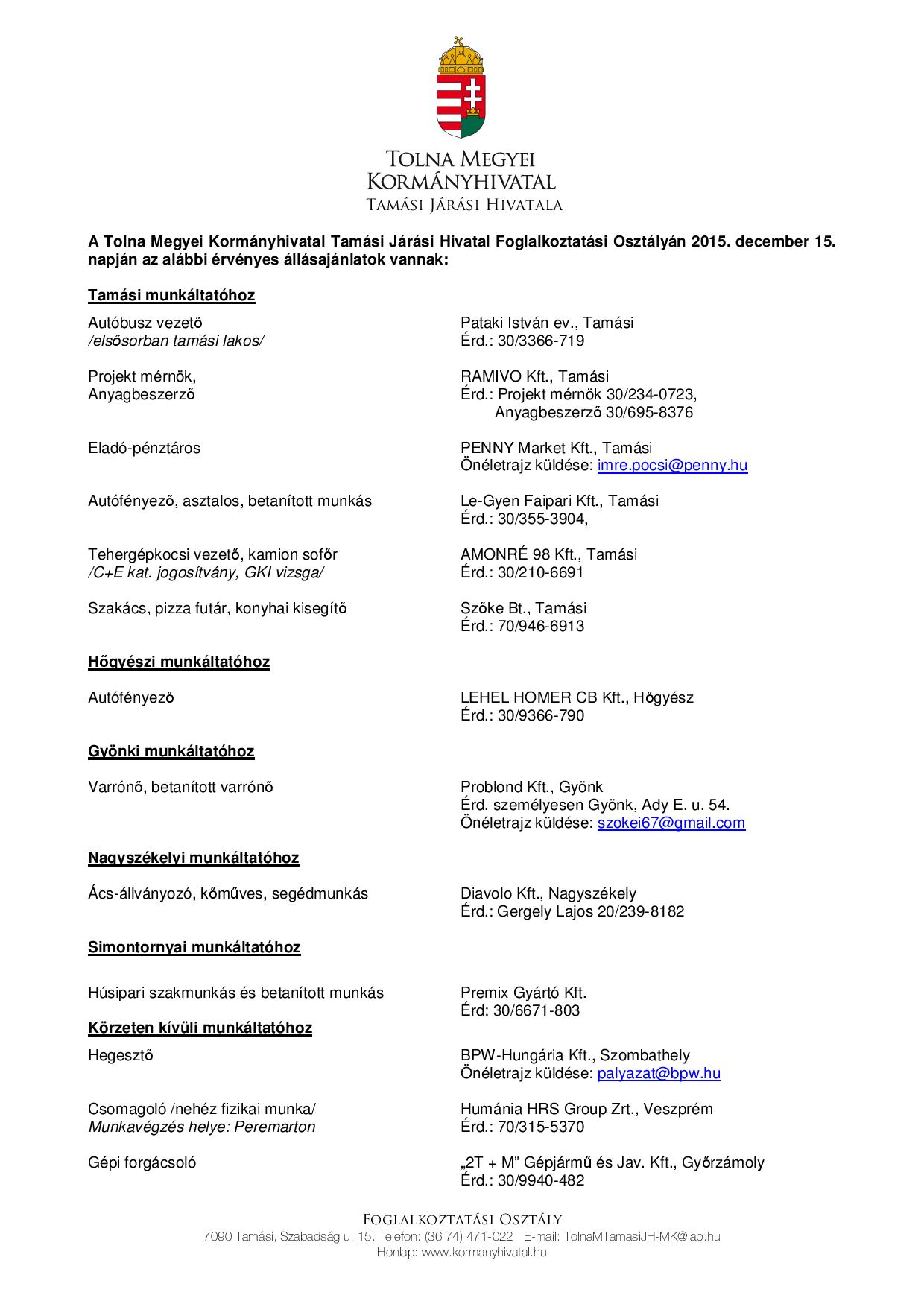 Tamási és környéke legfrissebb állásajánlatai