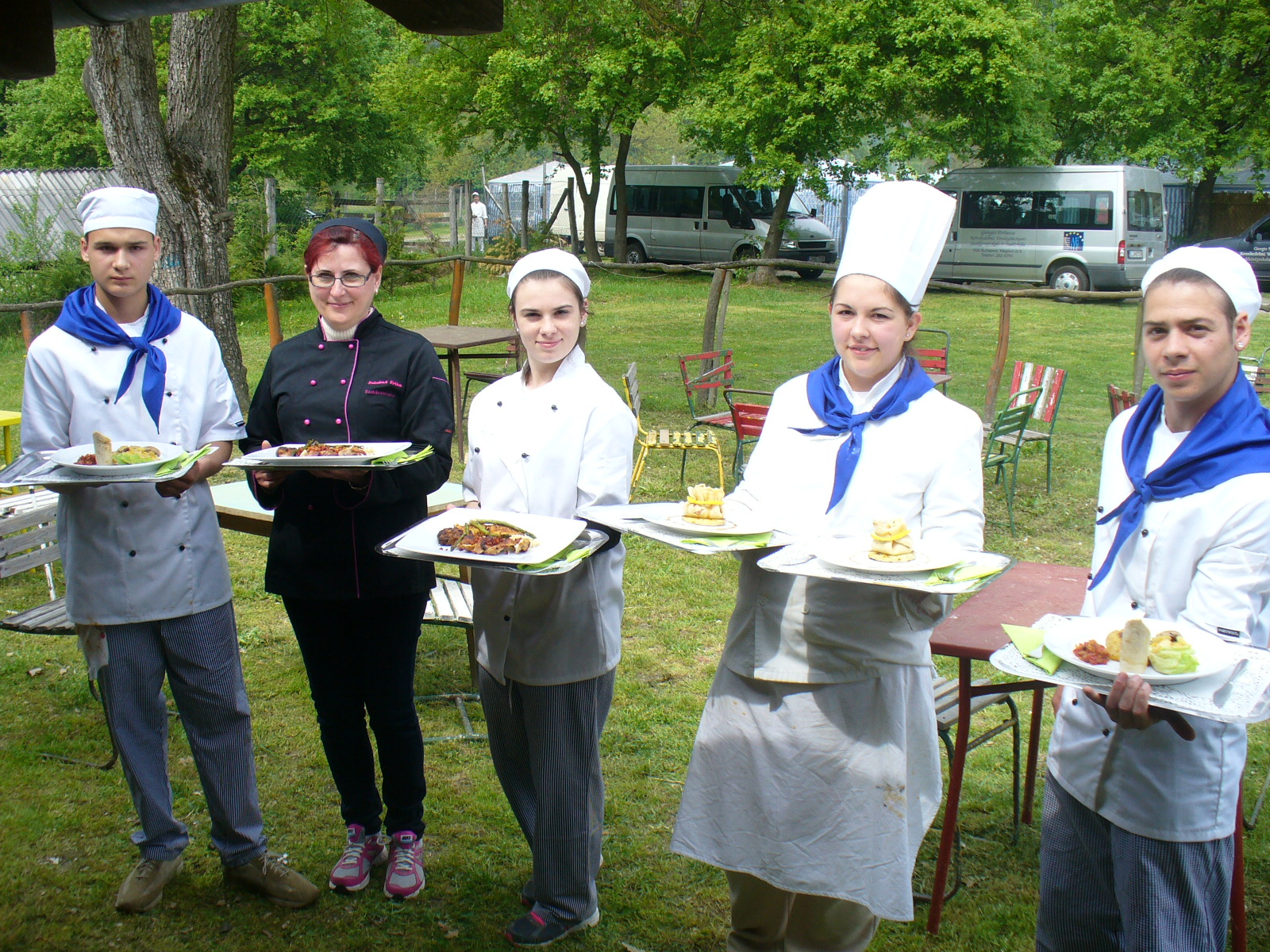 A verőcei Csattogó-völgyben rendezték meg a Vendéglátó – ipari Szakképző Intézmények XIV. Kárpát – medencei, Szabadtéri Tóth Jutka Emlékversenyét április 22-24-én. A Vályit Haszonics Bernadett (11. C), Hamrich Rebeka (10. D), Szőke Tamás (9. D) és Gábor Adrián (9. D) szakács tanulók képviselték, felkészítő tanáruk Jakab Jánosné volt. Összesen 22 iskola csapata mérte össze tudását, a vályis tanulók két kategóriában is indultak: sült ételek és bográcsos ételek kategóriában. Nem volt egyszerű dolguk: az ételsorokat megadott nyersanyagkosárból kellett összeállítani a nyersanyagok 90%-os felhasználásával, és rengeteg mindenre oda kellett figyelniük, pontozták ugyanis a nyersanyagveszteség mennyiséget az elkészítés közben, a tisztaságot, higiéniát, az ételsoroknál pedig a hagyományt, az újszerűséget, az elkészítésüket, tálalásukat, díszítésüket. A csapattagoknak főzés közben meglepetés feladatot is végre kellett hajtaniuk: egy tanulónak megadott nyersanyagokból kellett összeállítania és elkészítenie egy fantázia ételt, végül a csapattagoknak el is kellett fogyasztaniuk: sós tészta fánk készült lila hagymás sült burgonyával. A másik meglepetés feladat egy tojással kapcsolatos tesztlap kitöltése és különböző tojások felismerése volt, például tyúk, kacsa, liba, fürj vagy fácán. Ezen felül nehezítésként a két ételsorhoz a helyszínen három meglepetés nyersanyagot kaptak kézhez a tanulók, amiből kettőt kötelező volt beépíteni az ételsorba. A főzőhelyen lehetőség volt bemutatni Tamási környezetét, jellegzetességeit, a Vályit is, amelyet külön pontoztak.