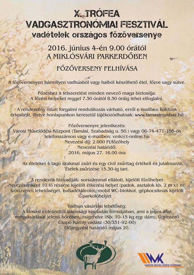 Már lehet nevezni a főzőversenyre - június 4-én 9 órától kezdetét veszi az idén jubiláló Trófea Vadgasztronómiai Fesztivál